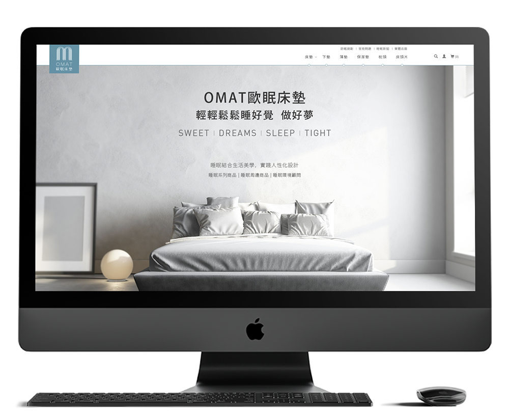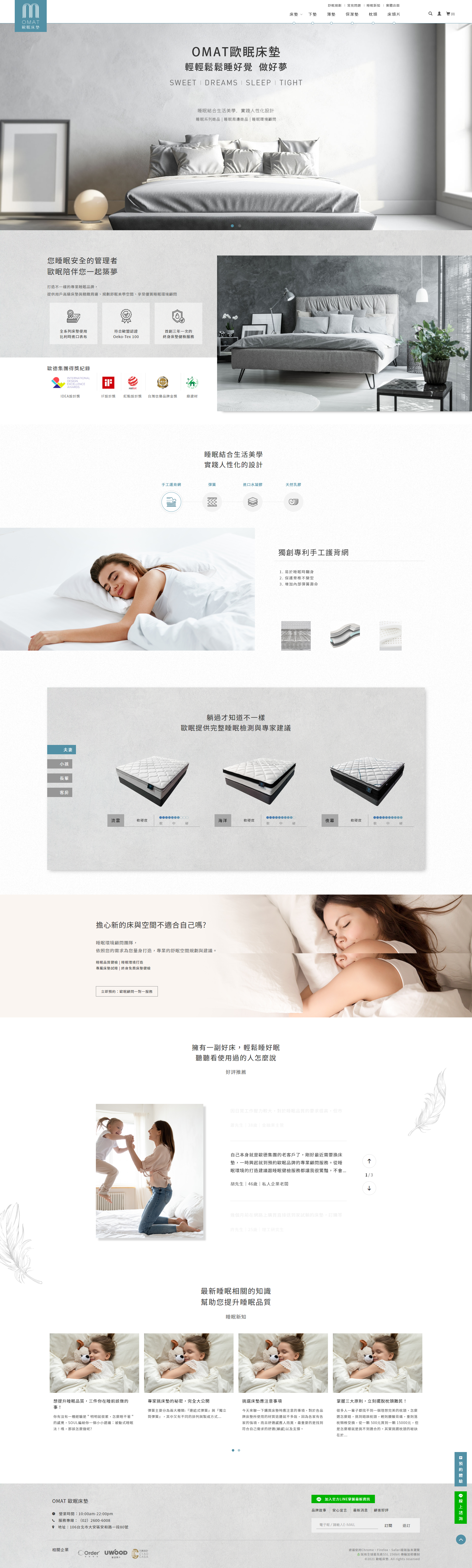 主形象以舒服輕柔的形象營造歐眠床墊想要為消費者帶來的睡眠體驗,再來將過去的得獎紀錄帶入品牌介紹中,增加品牌經營的專業度。